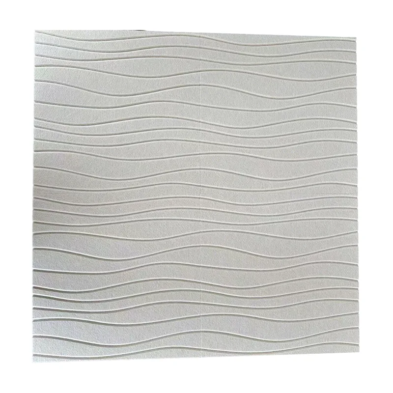 2. Absorbție a sunetului de înaltă eficiență: Procesul principal de „pungere cu ac” este secretul nostru tehnic. Matricea micro-porului formată din mii de perforații cu ace permite panoului acustic Beige Wave PET Felt să atingă un coeficient de absorbție a sunetului de peste 0,8 la frecvențe specifice (cu o cavitate de aer). Folosirea acestuia poate reduce semnificativ timpul de reverberație din interior, făcând vorbirea mai clară, muzica mai pură și mediul mai silențios. 3. Ecologic: Panoul nostru acustic din pâslă Beige Wave PET conține peste 50% fibre de poliester reciclate, iar produsul în sine este reciclabil la sfârșitul ciclului său de viață.